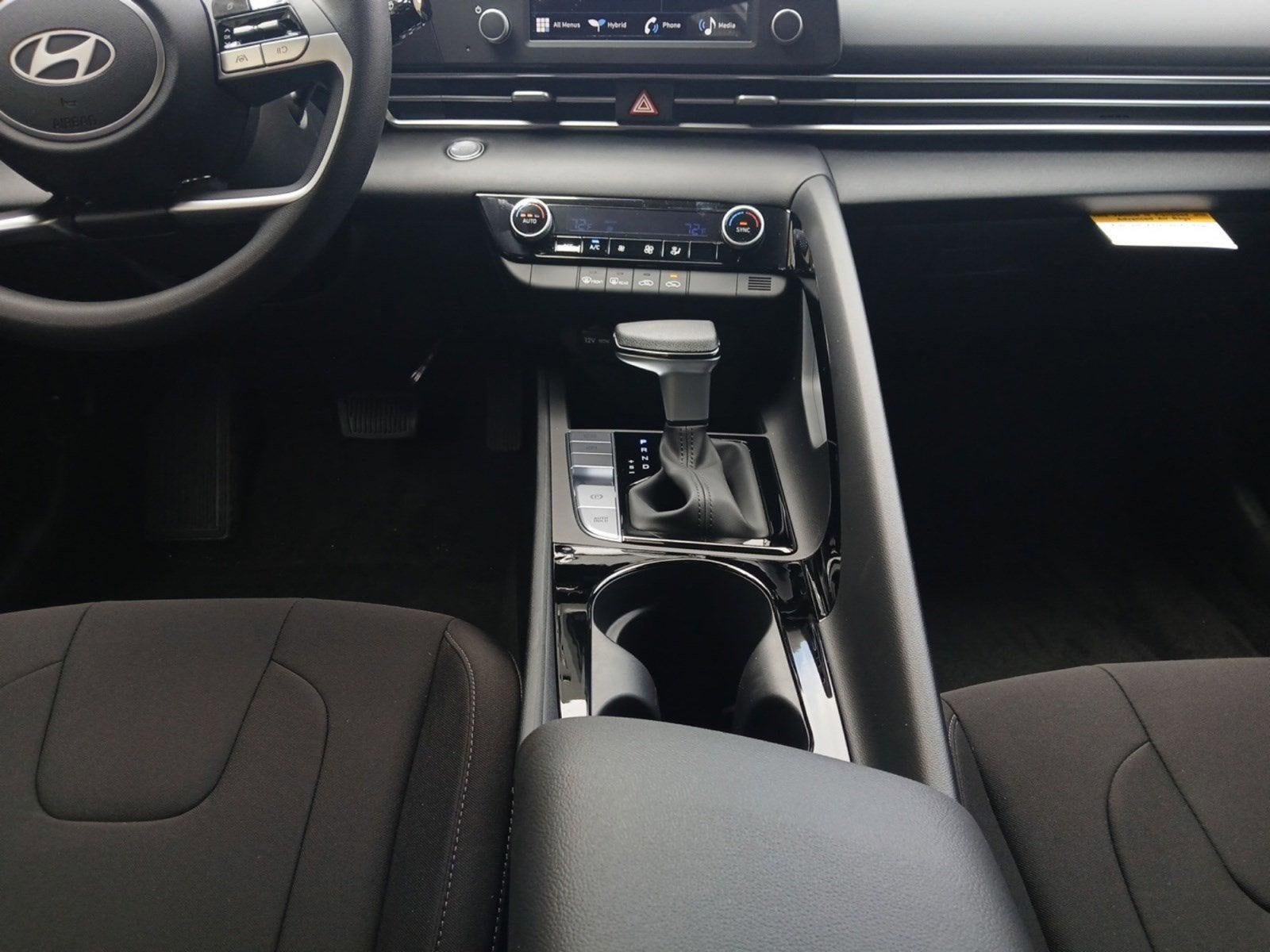 OPTION GROUP 01 -inc: standard equipment, CENTER CONSOLE TRAY, CARPETED FLOOR MATS, BLACK, PREMIUM CLOTH SEAT TRIM, ABYSS BLACK, Wireless Phone Connectivity, Window Grid Antenna, Wheels: 16" x 6.5J Alloy, Variable Intermittent Wipers, Urethane Gear Shifter Material. This Hyundai Elantra Hybrid has a powerful Gas/Electric I-4 1.6 L/96 engine powering this Automatic transmission.