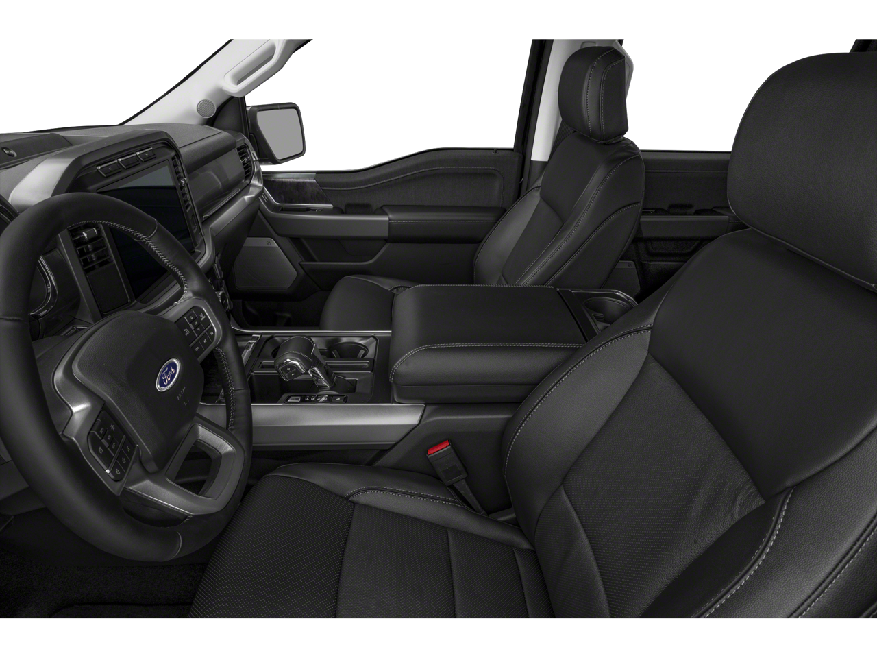The Lariat's striking exterior features a bold, athletic presence, with a Dark 2-Bar & 1 Minor Bar Style Grille, Body-Color Front & Rear Bumpers, and Accent-Color Angular Step Bars. Step inside and you'll be greeted by a premium, leather-trimmed cabin that offers unparalleled comfort and convenience, including heated and ventilated front seats, a Wireless Charging Pad, and the advanced SYNC 4 infotainment system.